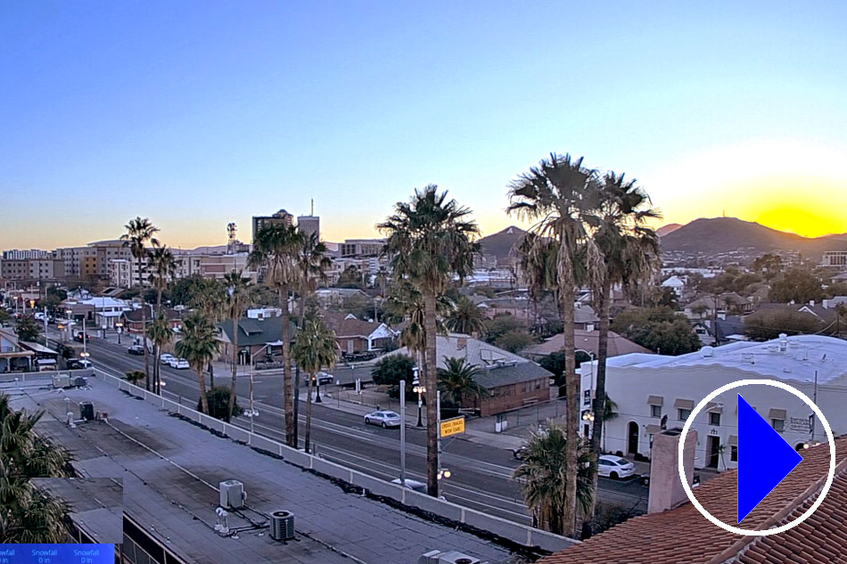 The view shows North 4th Avenue and Downtown Tuscon. The webcam is located at the Trinity Presbyterian Church Bell Tower.