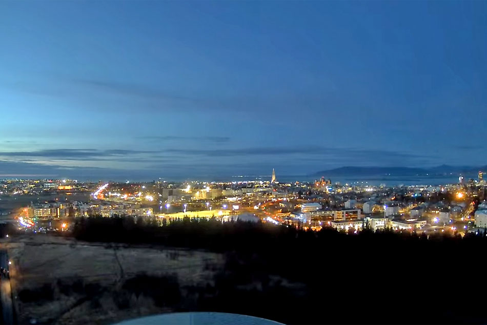 Info: Live streaming webcam showing the view of Mount Esja looking across the bay of Faxafloi from Reykjavik in Iceland.
